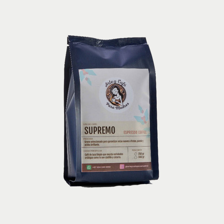 Nuestro Café Supremo es una joya del Tolima, cultivado y seleccionado a mano para garantizar los granos más grandes y de mejor calidad. Tostado medio, con notas dulces, frutales y un aroma envolvente, ideal para los amantes del café que buscan una experiencia intensa y elegante. Gracias a tu compra apoyas proyectos productivos liderados por madres cafeteras comprometidas con transformar su comunidad.
